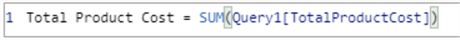 Total Product Cost = SUM(Query1[TotalProductCost])