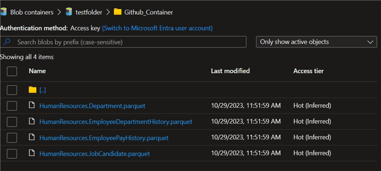 Follow the previous step to do this using Azure Data Lake Gen 2. The folder where the file will be copied is called “GitHub Container”.